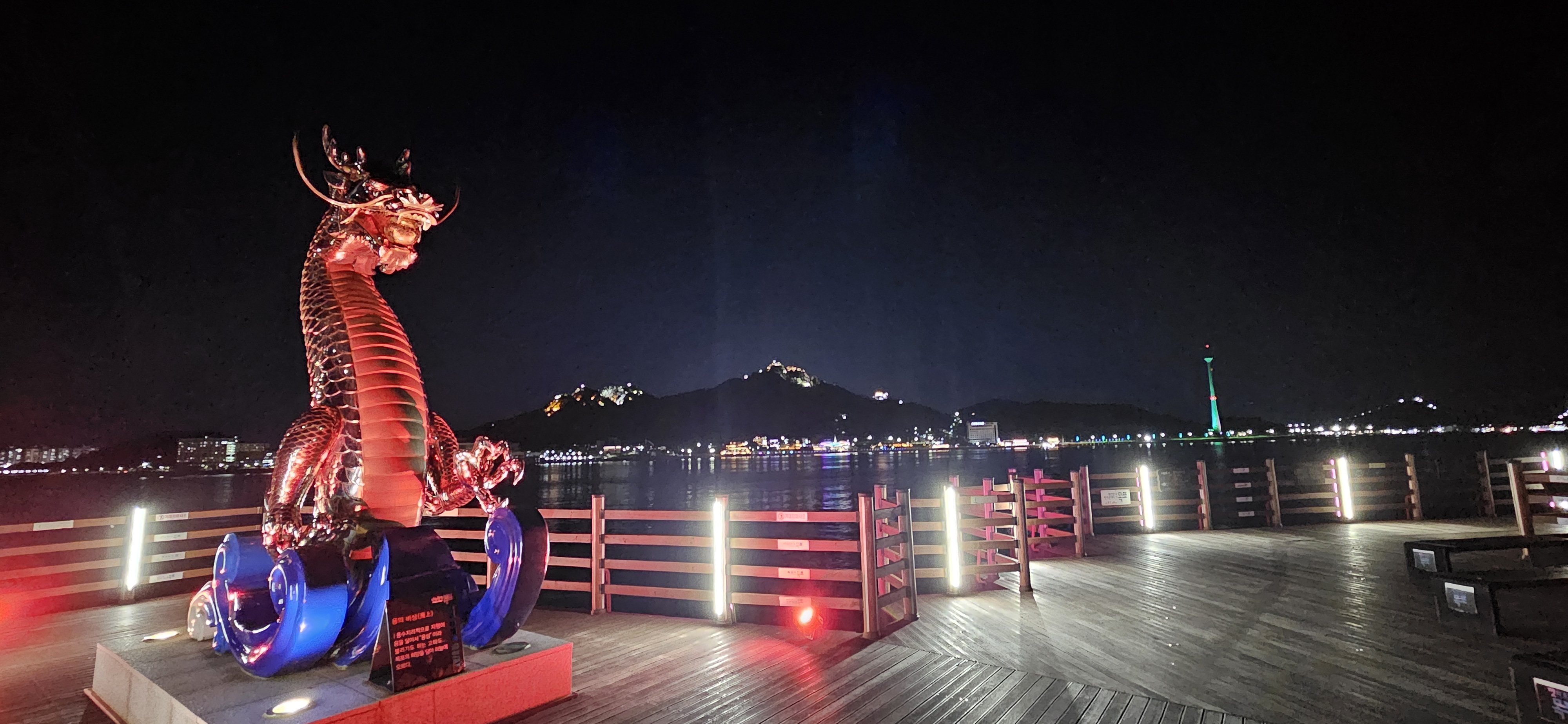 고하도 전망 포인트에 서니 정면으로는 유달산의 어두운 실루엣이 웅장하게 자리하고, 그 아래로는 유달공원의 불빛이 반짝이고 있었습니다.