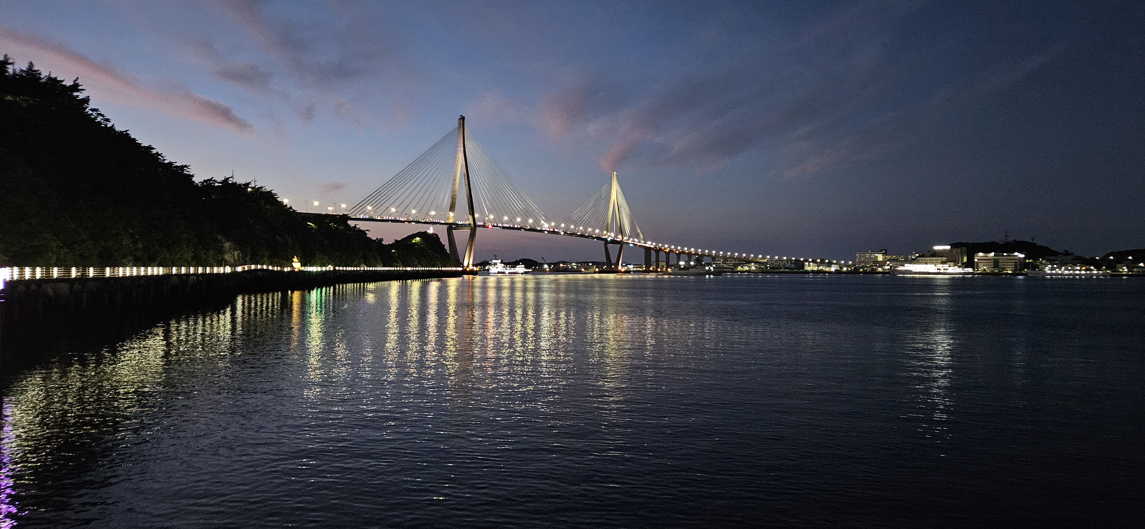 낮에는 웅장하게 바다를 가로지르는 다리였지만, 밤에는 다채로운 조명으로 빛나며 바다 위에 또 하나의 세상을 만들어 놓은 듯 보였습니다.