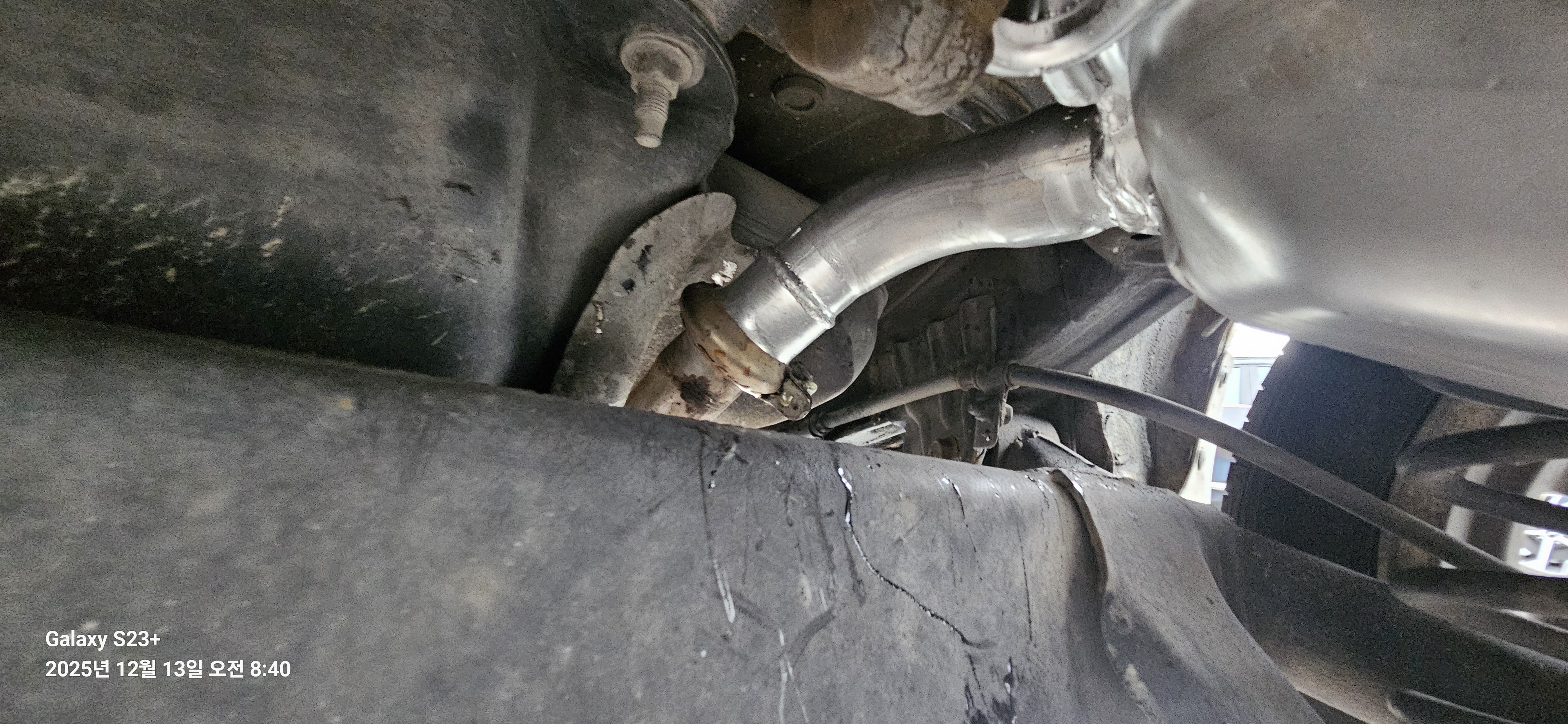 - 후 배기관 플랜지 부분 앞 뒤로 구멍 발견