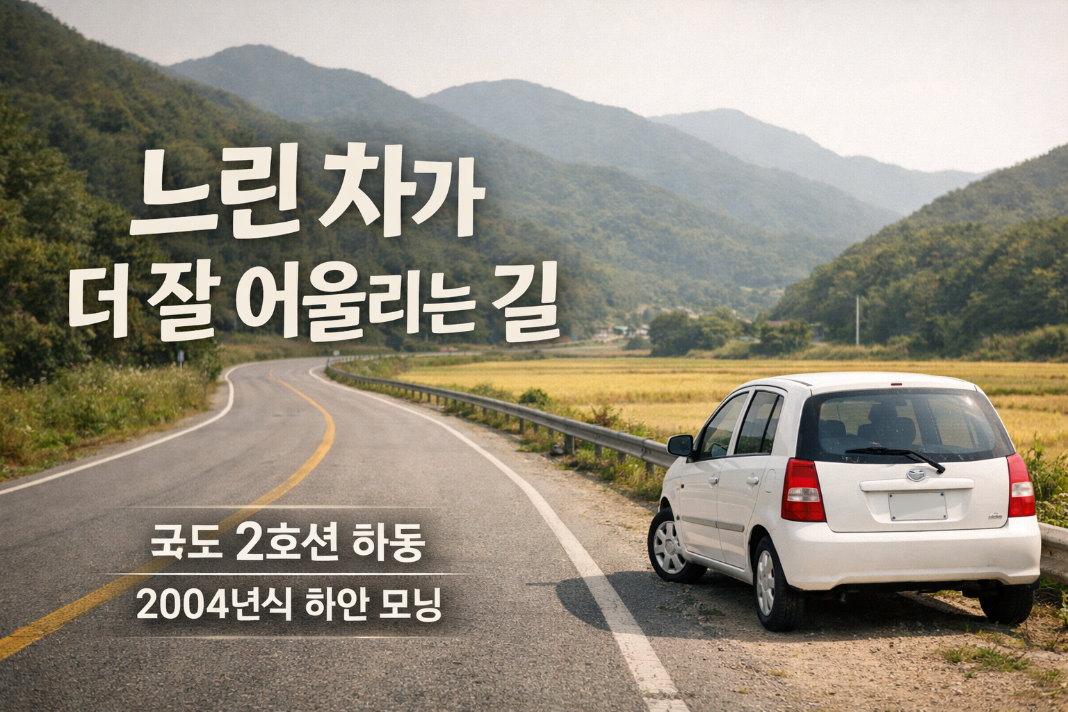 이번 글에서는 하얀 모닝, 그중에서도 초기형인 구형 모닝으로 국도 2호선 하동 구간을 직접 달리며 느낀 점을 정리해보려 한다.