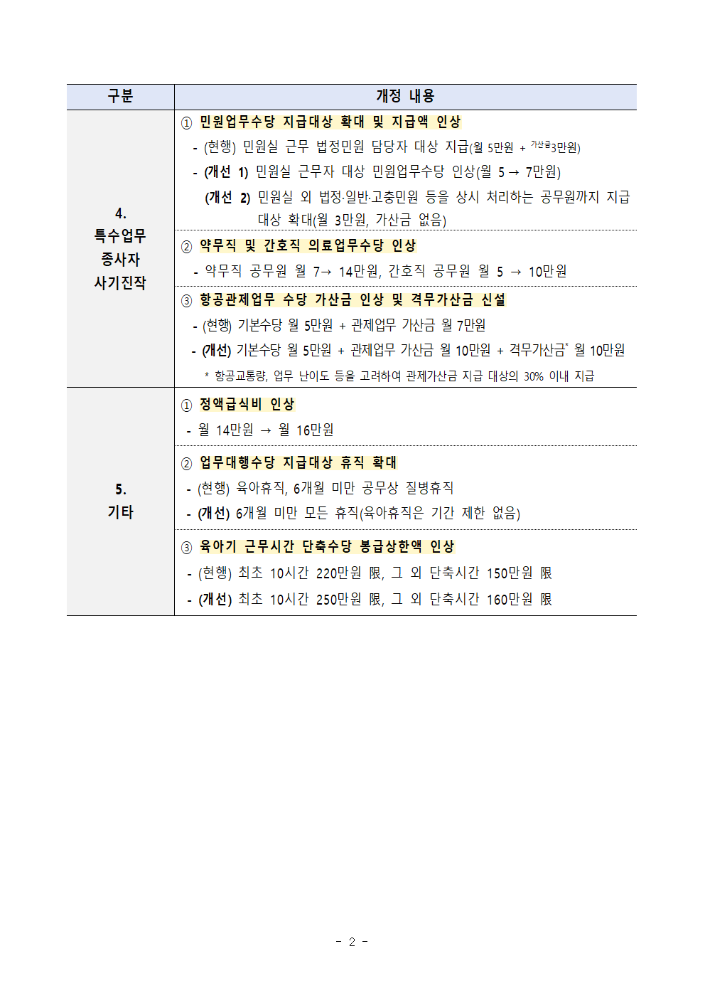 - 현장·특수·민원·성과 중심 수당 개편 폭 확대