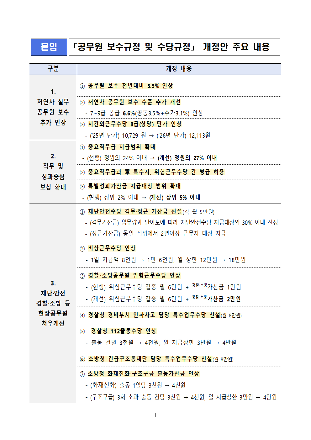 - 2026년 공무원 보수 전년 대비 3.5% 인상
