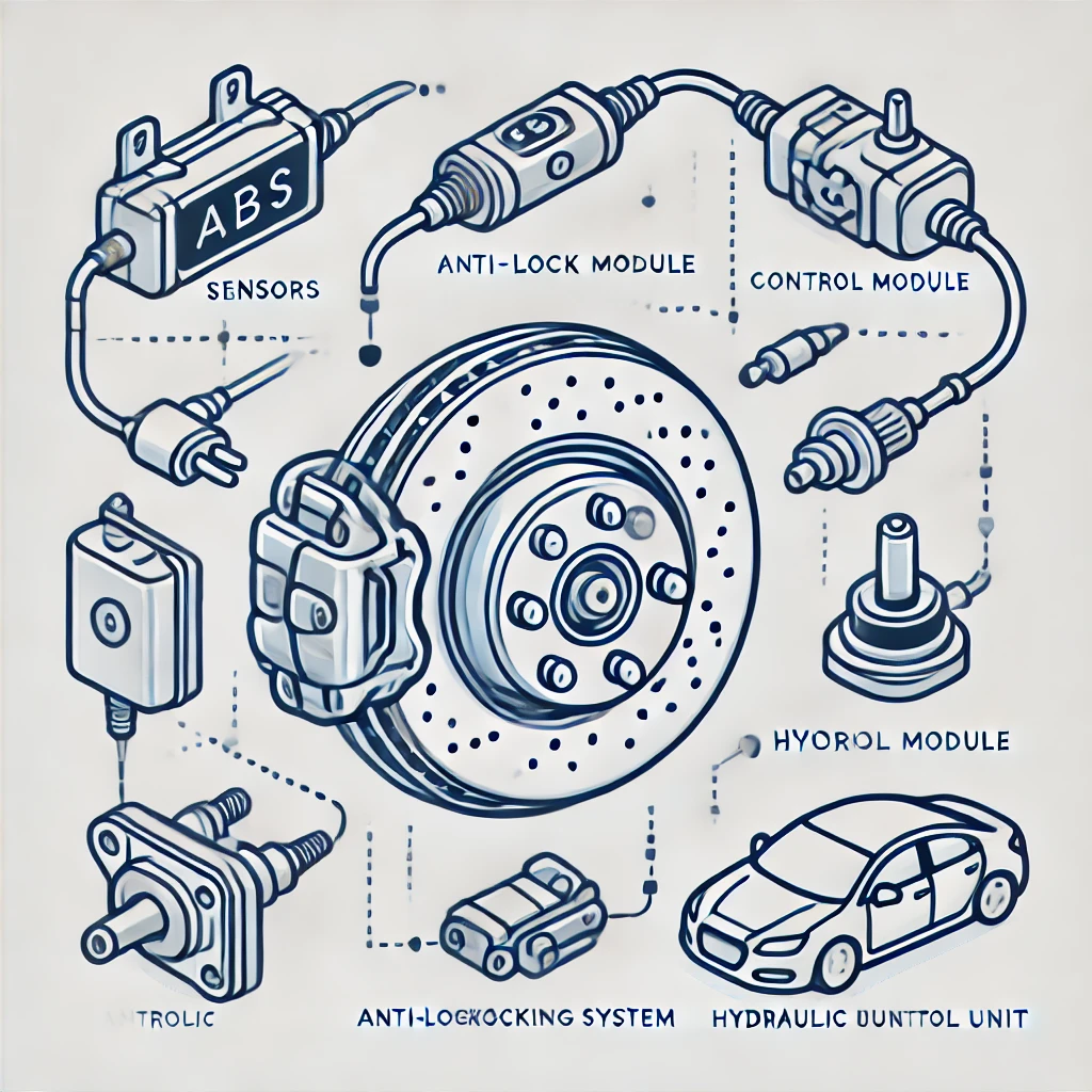 제동 시 바퀴가 잠기는 것을 방지하여 차량의 제어력을 유지합니다. 센서, 제어 모듈, 유압 조절 장치로 구성되어 있습니다.