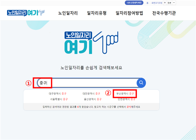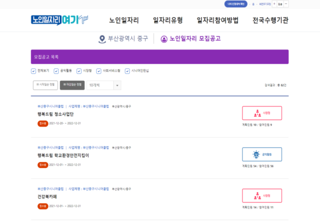 2) 검색 페이지 아래 지역구의 ‘노인일자리 모집공고’ 확인