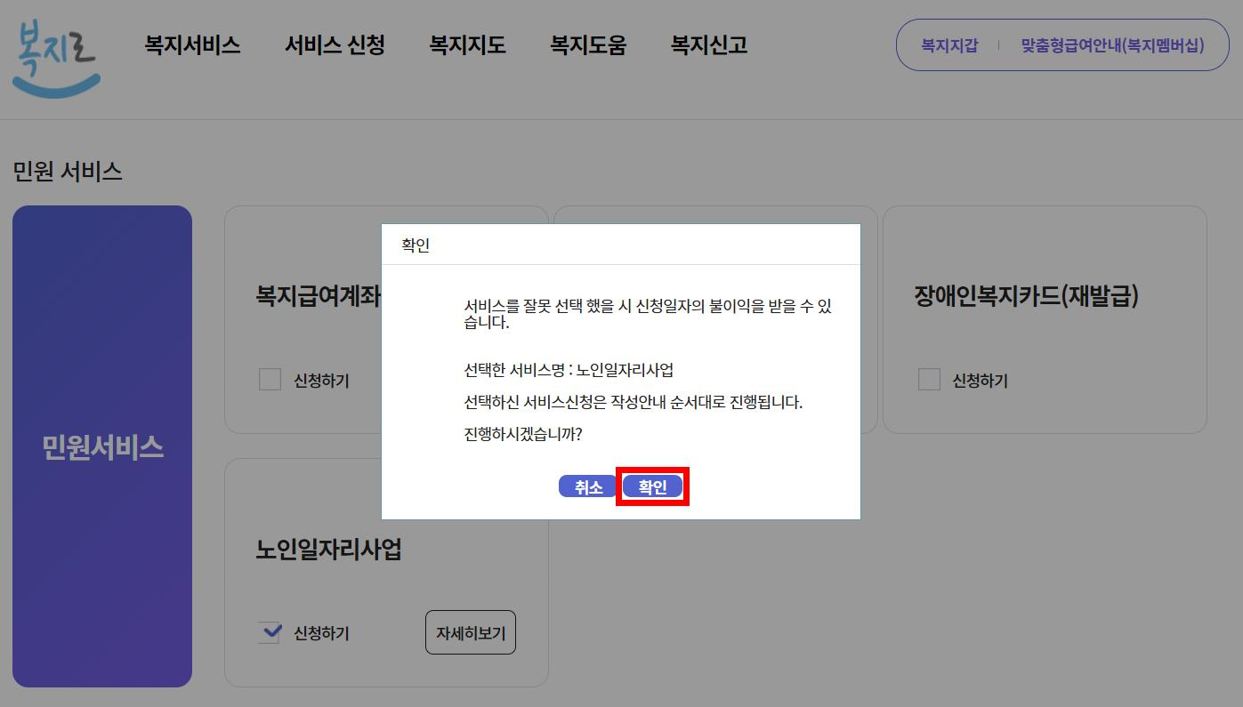 1) 복지로(로그인 필요)→서비스 신청