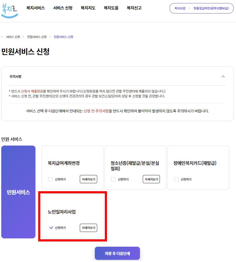 4) 노인일자리사업 신청(민원서비스 신청)