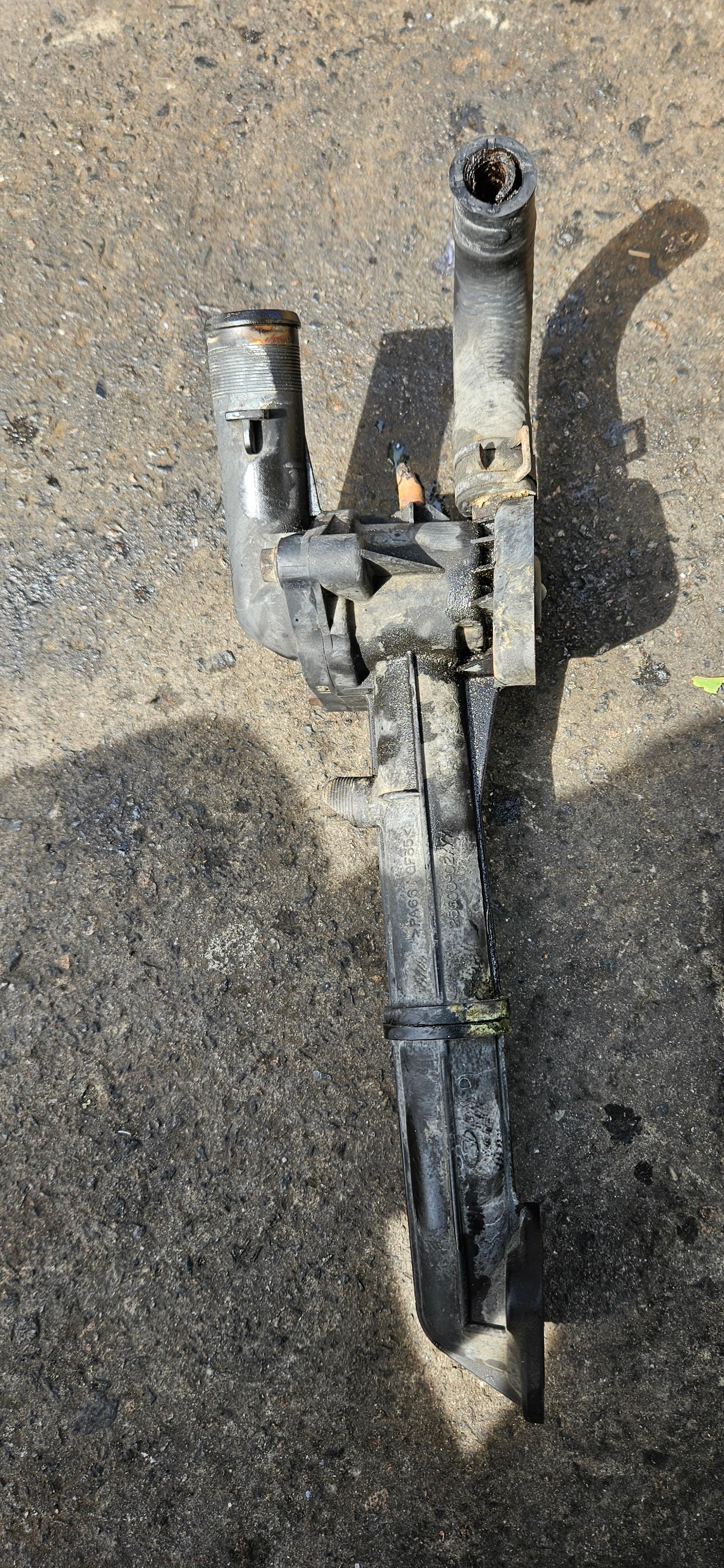 - 모닝 하체 점검하다가 워터 아웃렛(써모스탯 하우징 포함 파이프) 어셈블리 균열 또는 변형으로 누수 부위 발견, 새 부품으로 교체