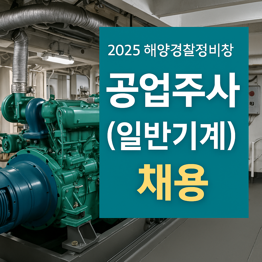 2025년 해양경찰정비창에서 공업주사(일반기계) 직렬의 전문 인재를 모집합니다. 공업주사(일반기계)는 해양경찰 함정의 주기관·발전기관 정비와 운영 유지를 담당하는 핵심 직렬입니다.